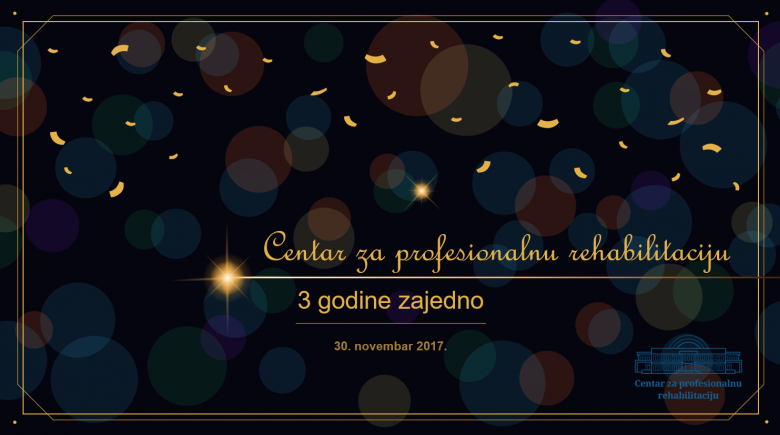 Zbog nemogućnosti da, usljed pandemije izazvane korona virusom, na adekvatan način proslavimo 30. novembar, dan Centra za profesionalnu rehabilitaciju, želimo na ovaj način da vas obavijestimo da se danas navršavaju tri godine njegovog postojanja.